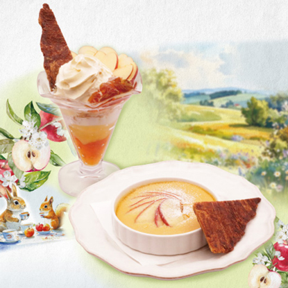 そんなアリーヌからイマジネーションを膨らませて、ルノワールの故郷の伝統菓子クラフティを主役に、2 人が過ごした南仏をイメージした温かで家庭的なやすらぎの空間を提供します。