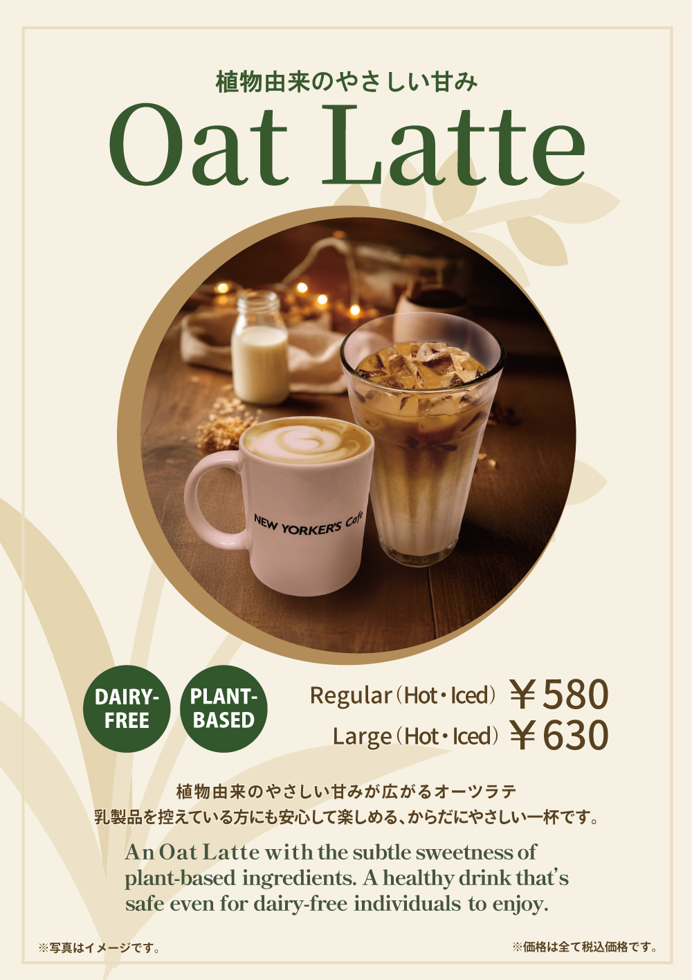 新橋汐留口駅前店 2月1日(日)開始 期間限定「オーツラテ」 2026年1月30日 新橋汐留口駅前店 期間限定ドリンク 2026年2月1日(日) 開始 オーツラテ ●Regular(Hot・Iceⅾ) ¥580 Large(Hot・Iced) ¥630 植物由来のやさしい甘みが広がるオーツラテ。乳製品を控えている方にも安心して楽しめる、からだにやさしい一杯です。 NEW YORKER'S Cafe インフォメーション 季節のおすすめ メニュー 当店のこだわり カロリー・アレルギー物質情報 店舗検索 採用情報